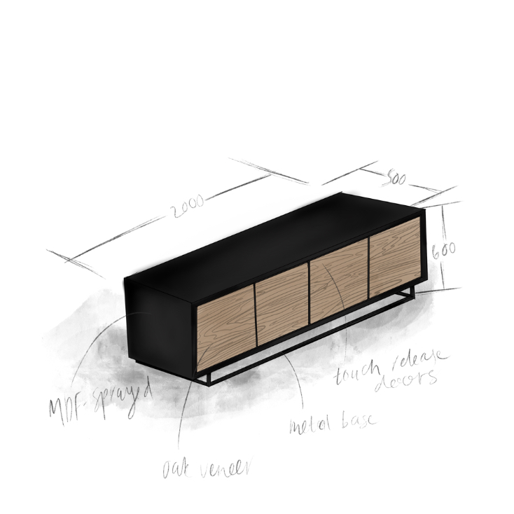 Tags duco, mdf sprayed, metal frame, oak veneer, touch release, two-tone